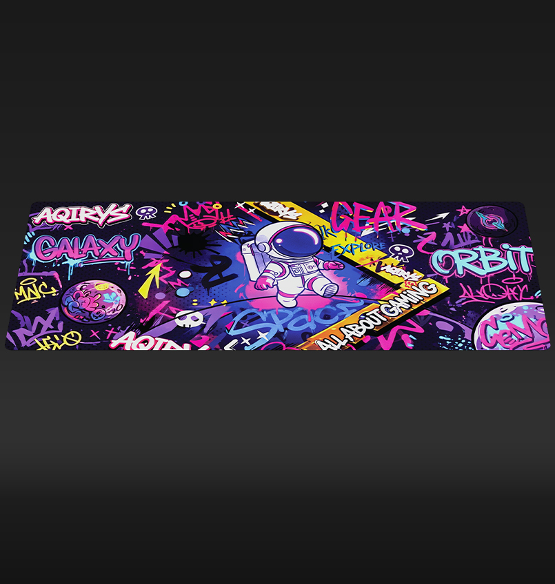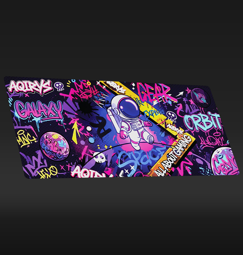 With artwork inspired by the vibrant energy of street art and a courageous astronaut exploring a graffiti-filled galaxy, GOLDILOCKS is our latest product designed to elevate your gaming experience. Available in Medium and Extra-Large, this pad ensures your setup stands out with a bold, rebellious spirit. Immerse yourself in this colorful urban adventure as you navigate the stars on a surface built for a masterclass in balance