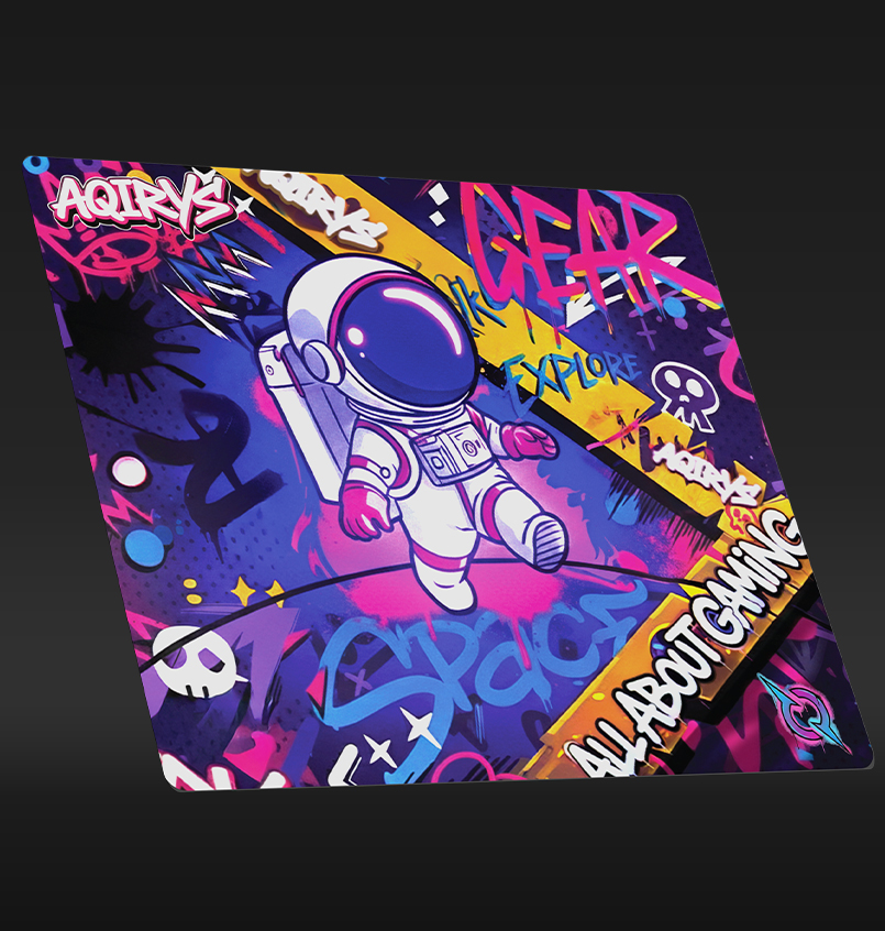 With artwork inspired by the vibrant energy of street art and a courageous astronaut exploring a graffiti-filled galaxy, GOLDILOCKS is our latest product designed to elevate your gaming experience. Available in Medium and Extra-Large, this pad ensures your setup stands out with a bold, rebellious spirit. Immerse yourself in this colorful urban adventure as you navigate the stars on a surface built for a masterclass in balance