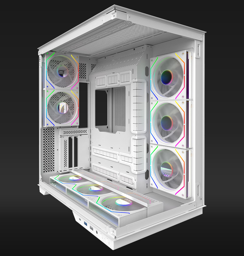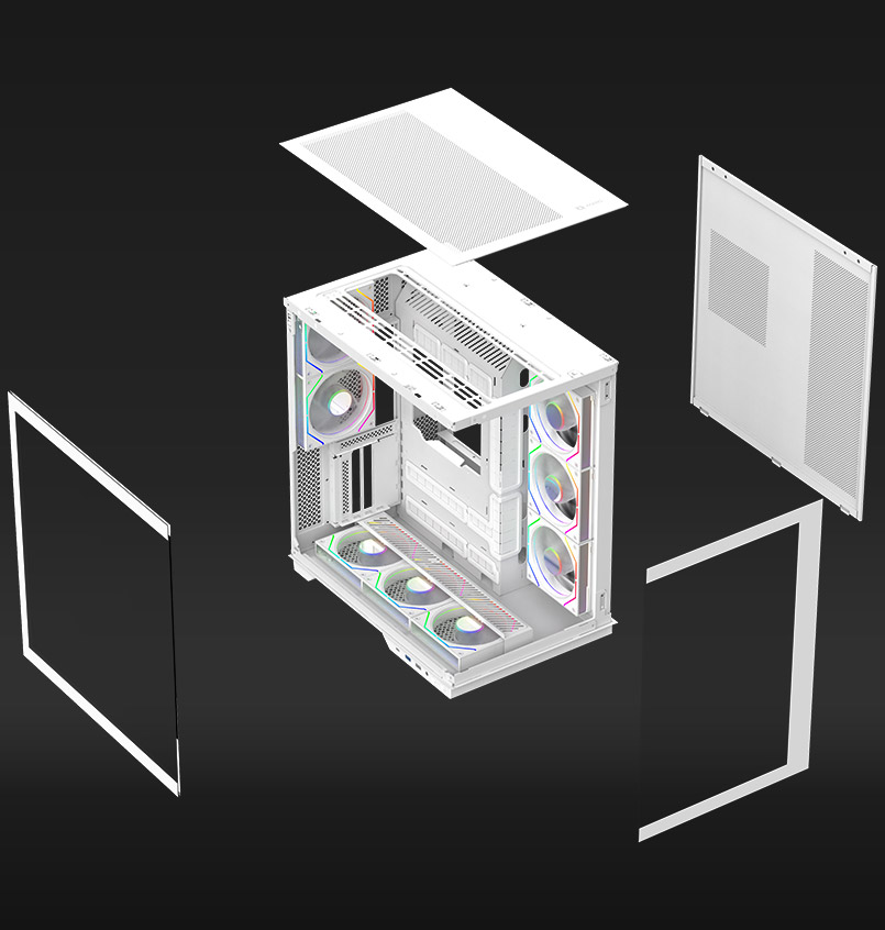Named after the Roman god of duality, gateways, and transitions, JANUS embodies versatility and vision. Its tempered glass front and side panels frame your build with clarity, while the SPCC steel chassis (0.8 mm thick) provides a sturdy structure in sleek black or white. Whether you're building for performance or aesthetics, JANUS bridges the two with balance and boldness.