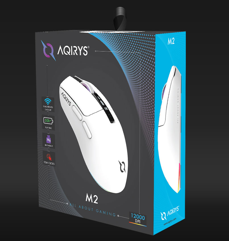 The M2 wireless gaming mouse combines versatility, precision, and endurance in a robust package. Built for gamers who demand freedom and reliability, it offers triple connectivity (2.4 GHz, Bluetooth, Wired), a lightweight 70g chassis, and a symmetric right-handed shape for intuitive control. With its integrated OLED display, long-lasting battery, and splash-proof build, M2 delivers consistent performance for every session.