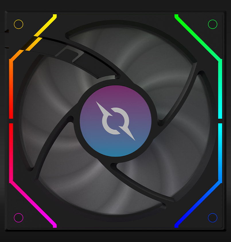 The fan designated 4P-12SLI26-ARGB is built around a minimalist round frame with 120 mm mounting holes and is equipped with 26 LEDs to illuminate its interior, the transparent blades and gives the illusion of infinity tunnel mirror lights at the center! The model is fully compatible with the AQIRYS Europa cases.