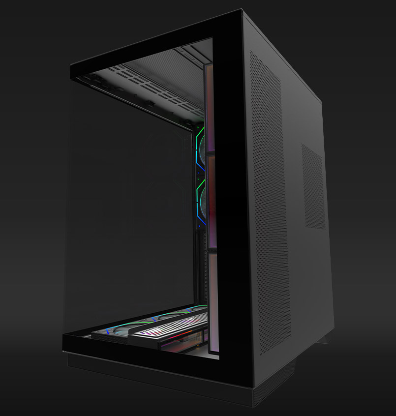 With support for up to 11 fans, including three more on the top panel, JANUS keeps thermal performance high while your components shine bright behind glass. It supports radiators up to 360 mm on the top and side, offering flexible cooling for serious systems.