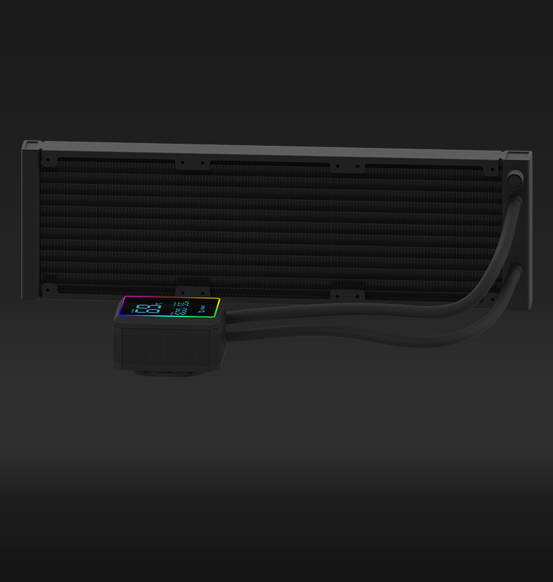 AURORA isn’t just about keeping things cool—it keeps you informed and in control. The integrated LCD screen displays real-time system stats including CPU temperature, GPU temperature, and fan speed, letting you monitor performance with just a glance. Visually, AURORA stands out with fully customizable ARGB lighting on both the fans and the pump, easily synced with major motherboard platforms like ASRock Polychrome Sync, ASUS Aura Sync, Gigabyte RGB Fusion, and MSI Mystic Light Sync. Braided tubing and a clean pump design complete the aesthetic, giving your build a polished, high-end look.