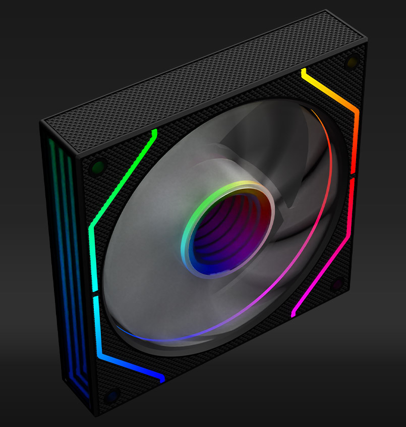 The fan designated 4P-12SLI26-ARGB is built around a minimalist round frame with 120 mm mounting holes and is equipped with 26 LEDs to illuminate its interior, the transparent blades and gives the illusion of infinity tunnel mirror lights at the center! The model is fully compatible with the AQIRYS Europa cases.
