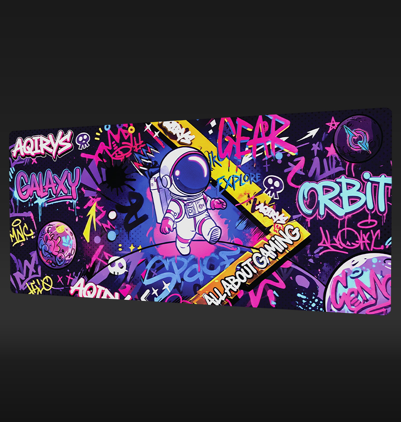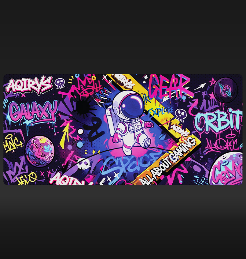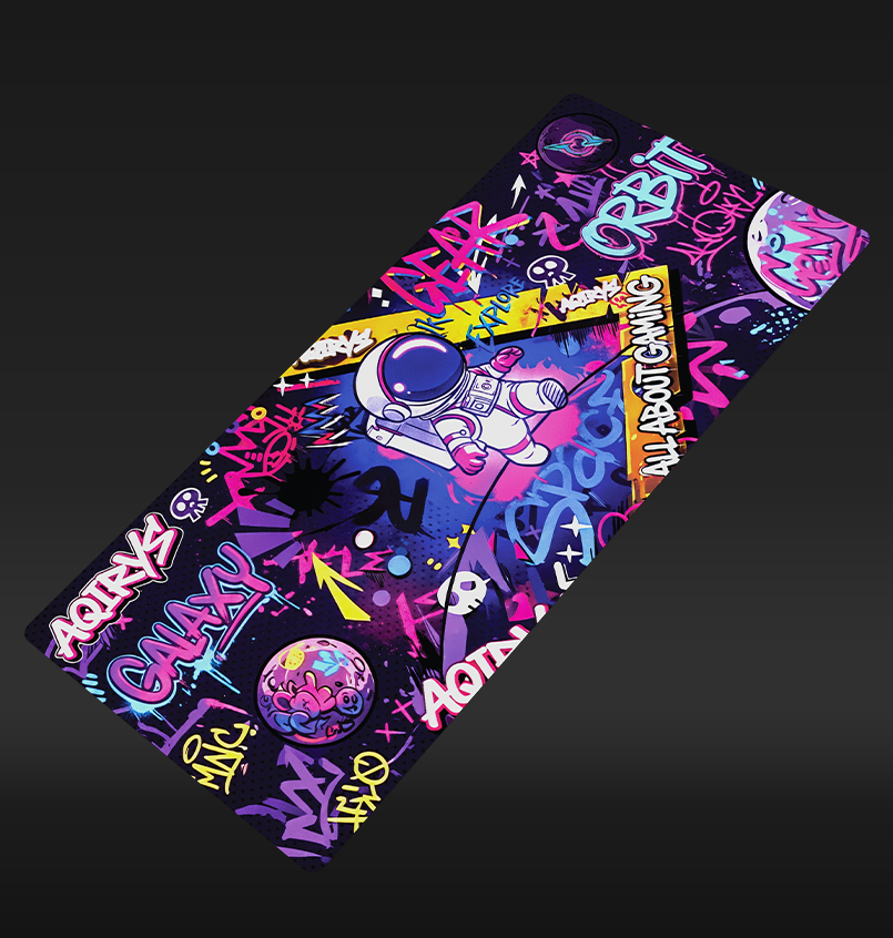 With artwork inspired by the vibrant energy of street art and a courageous astronaut exploring a graffiti-filled galaxy, GOLDILOCKS is our latest product designed to elevate your gaming experience. Available in Medium and Extra-Large, this pad ensures your setup stands out with a bold, rebellious spirit. Immerse yourself in this colorful urban adventure as you navigate the stars on a surface built for a masterclass in balance