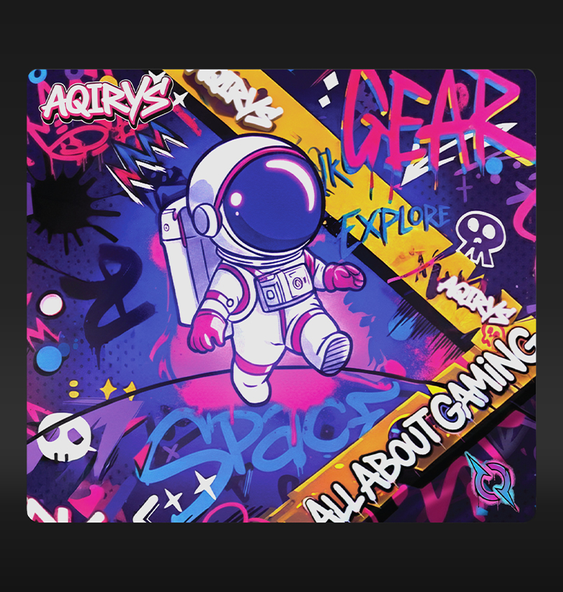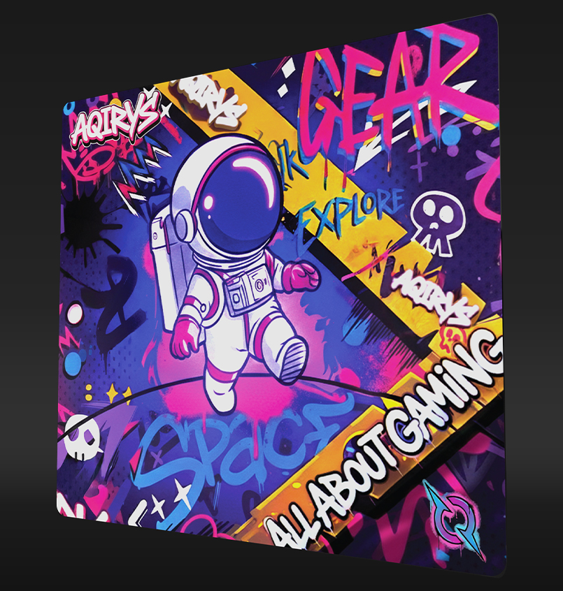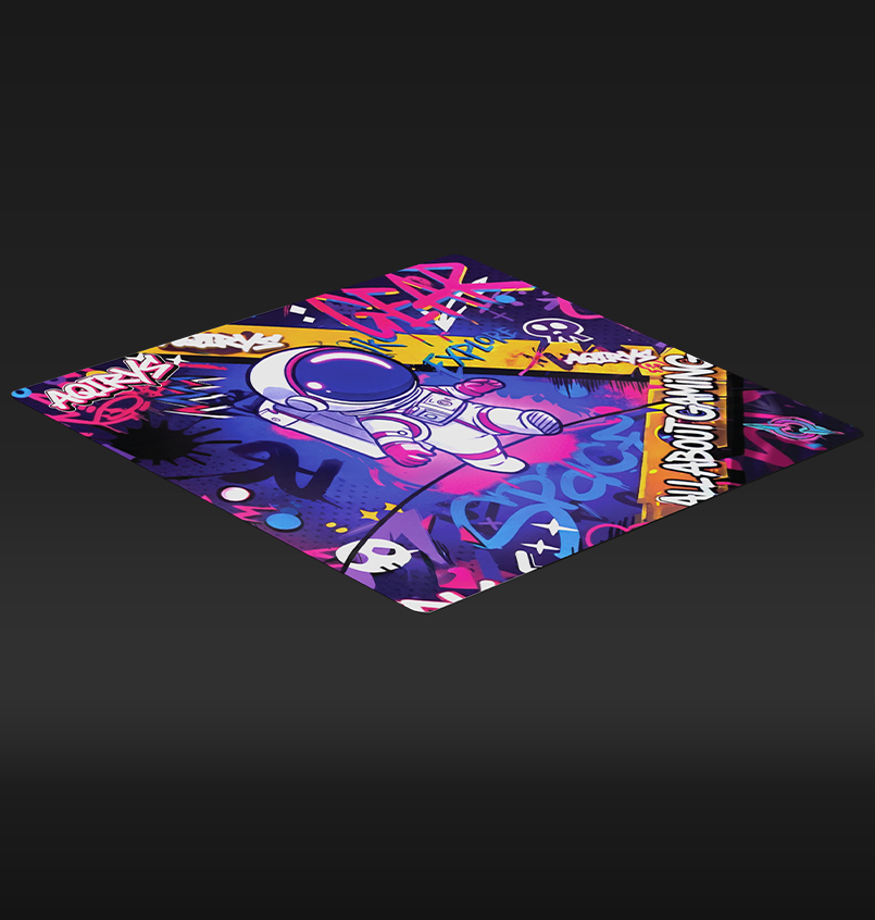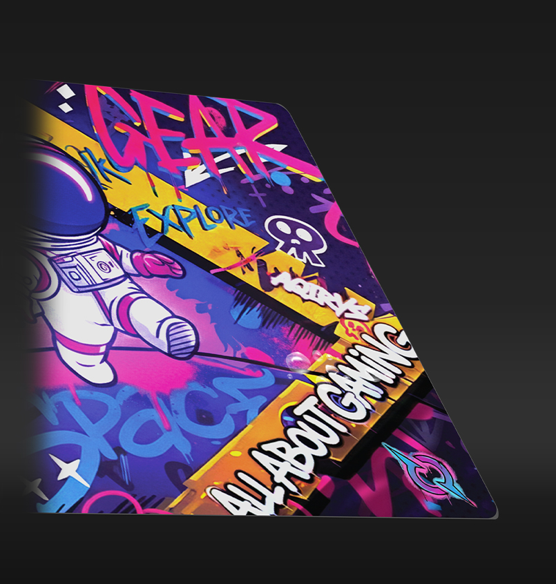 With artwork inspired by the vibrant energy of street art and a courageous astronaut exploring a graffiti-filled galaxy, GOLDILOCKS is our latest product designed to elevate your gaming experience. Available in Medium and Extra-Large, this pad ensures your setup stands out with a bold, rebellious spirit. Immerse yourself in this colorful urban adventure as you navigate the stars on a surface built for a masterclass in balance