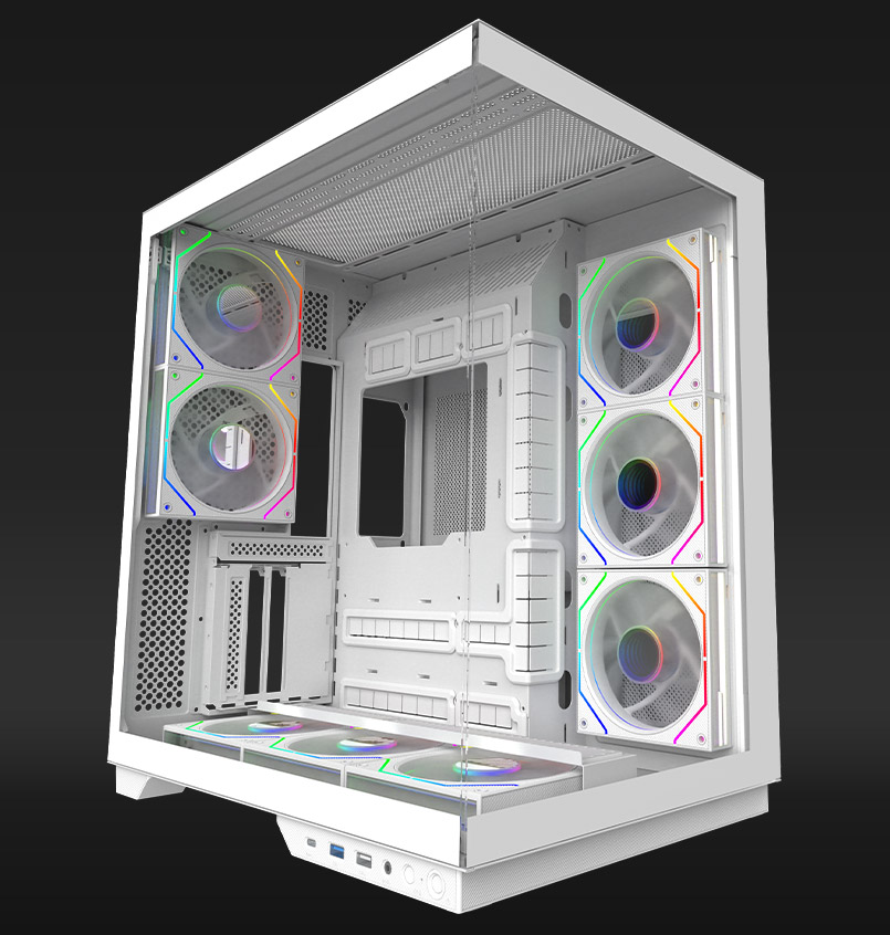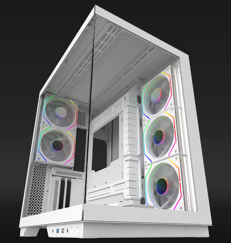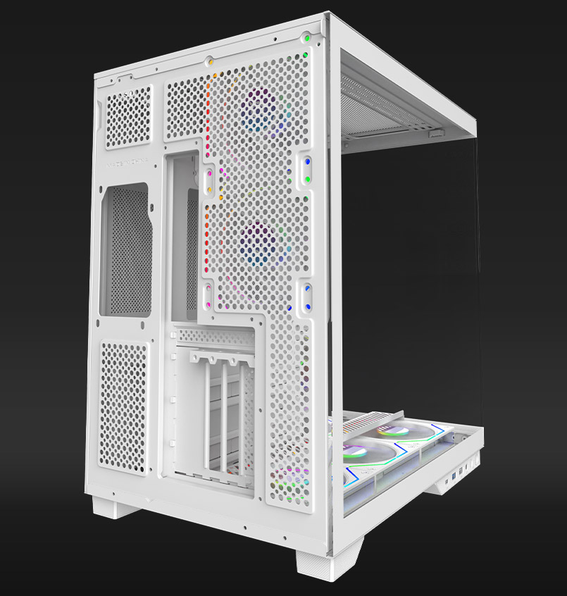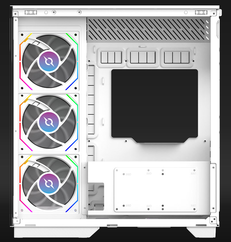 Named after the Roman god of duality, gateways, and transitions, JANUS embodies versatility and vision. Its tempered glass front and side panels frame your build with clarity, while the SPCC steel chassis (0.8 mm thick) provides a sturdy structure in sleek black or white. Whether you're building for performance or aesthetics, JANUS bridges the two with balance and boldness.