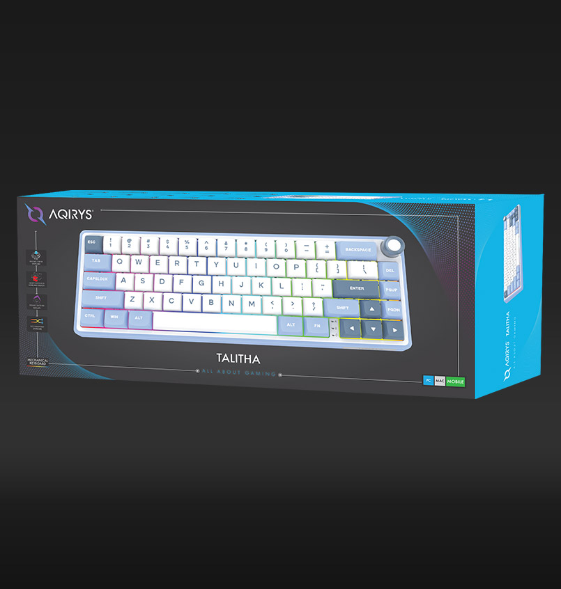 Topping it off, TALITHA lights up with per-key North-Faced dynamic RGB effects, shining through to match your setup's aesthetic. Tweak it all manually or dive deep into custom presets using the fully-featured AQIRYS software suite for advanced configuration and N-key rollover management.