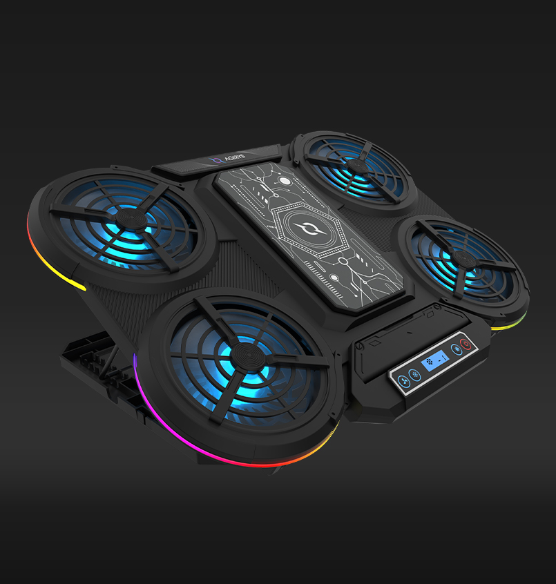 Inspired by the peak of cooling performance, the ZENITH Cooler Pad is designed to bring ultimate cooling power and sleek aesthetics to your gaming or work setup. Engineered for laptops up to 17 inches, ZENITH combines powerful dual-fan technology, a central cooling boost, and vibrant RGB lighting, making it the ultimate choice for those who demand performance and style.