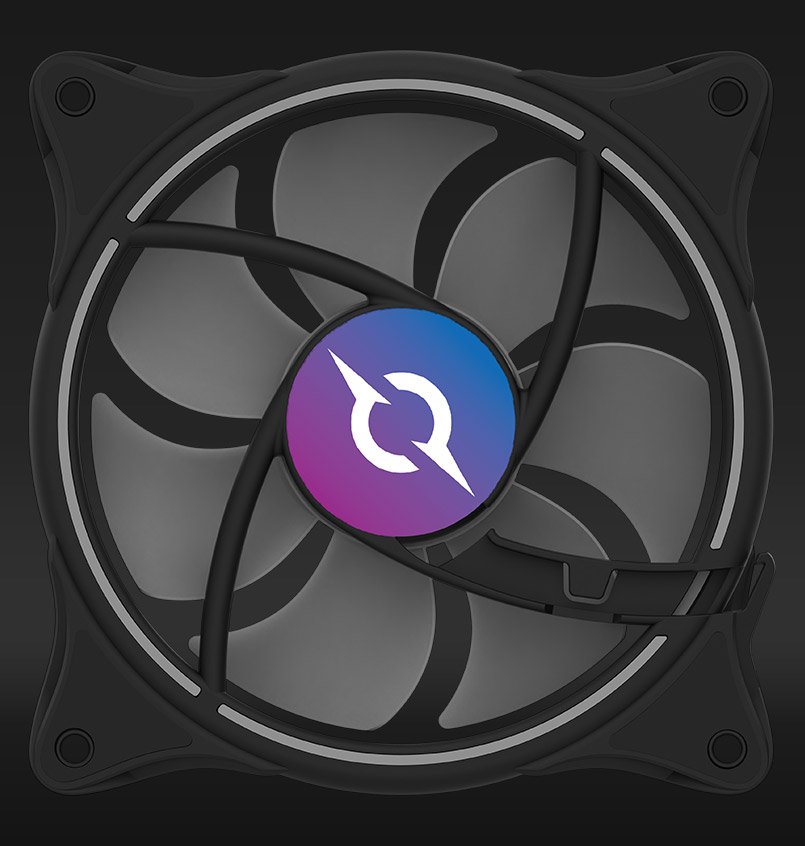 The featured fan (model 4PW-12DL24-ARGB) is built around a minimalist round frame with 120 mm mounting holes and is equipped with 24 LEDs that create two remarkable ARGB light-loops around the fan intake and middle, lighting up the interior too!
